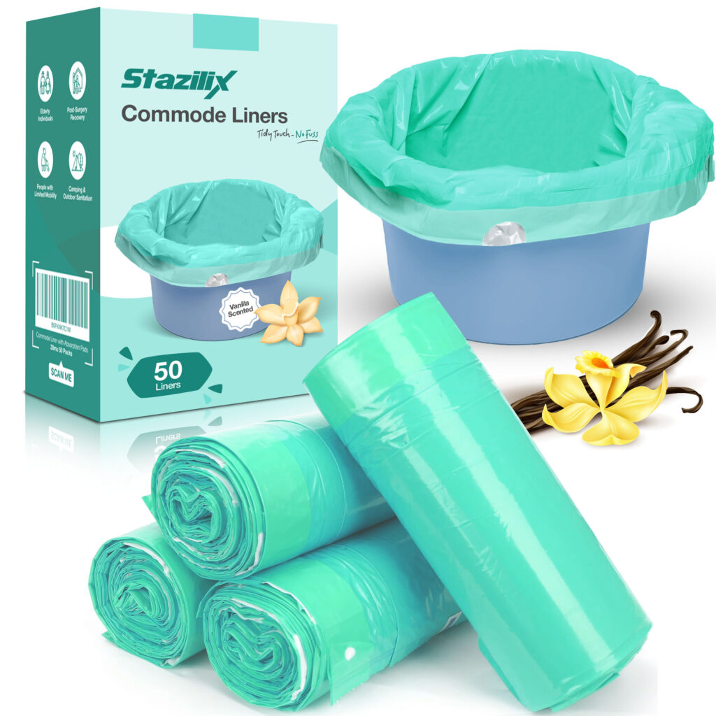 Stazilix Commode Liners with Absorbent Pads are designed to simplify hygiene management for individuals using commode chairs. Each liner is made from durable, leak-resistant material and fits most standard commode buckets. Paired with a super-absorbent pad that solidifies up to 1000 mL of liquid, this combo helps reduce odor, prevent spills, and make cleanup effortless.